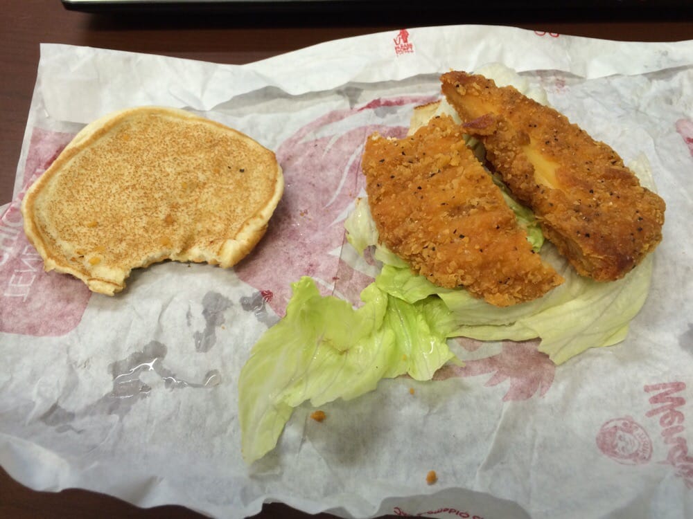 Juicy white meat, lightly breaded and seasoned, topped with crisp lettuce, and mayo. More than delicious, and just the right size.